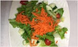 White sauce, lettuce, tomatoes, cucumbers, olives & carrots tossed with house vinaigrette dressing & sprinkled mozzarella cheese on top.